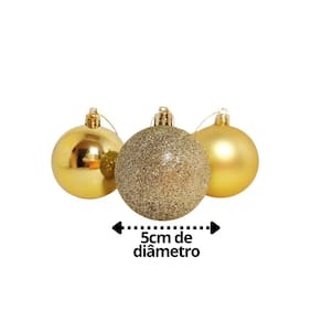 -24 Bolas mistas Dourada 5cm de diâmetro incluso cordão para pendurar - Riomaster