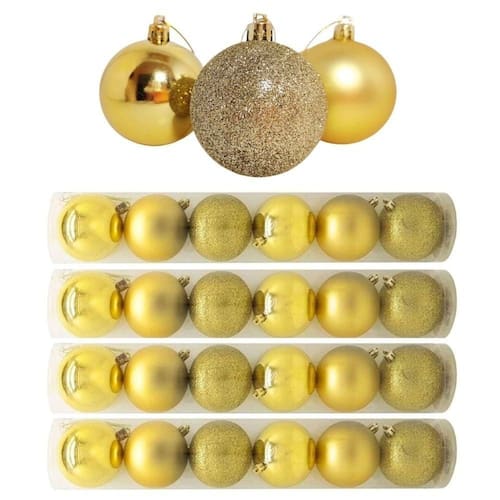 -24 Bolas Natal Mista Glitter, Fosca, Dourada 7cm - Master Christmas