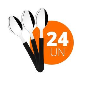 24 colheres de sobremesa leme com lamina em aco inox cabo preto cspbag - tramontina 23186400