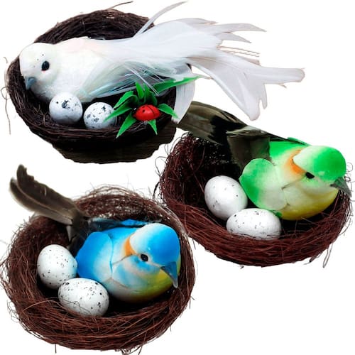 Kit 8 Pássaros Azul No Ninho De 15cm;