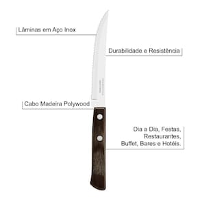 Você que precisa de talheres de qualidade na hora seus convidados e principalmente para o dia a dia! Agora você tem a Faca de Churrasco Tramontina Polywood Inox Cabo Castanho de 5 polegadas, seu churrasco no jantar ou almoço terá o charme e a qualidade que você merece.Com lâmina produzida em aço inox com tratamento térmico, a faca possui fio de alta durabilidade e resistência.Possui cabo em madeira tratada Polywood que proporciona a combinação perfeita de material e cor, ideal para ambientes residenciais e comerciais.Além de tudo isso, pode ir à máquina de lavar louças facilitando seu dia a dia ainda mais.Este modelo é ideal para festas, restaurantes, buffet, bar e hotéis. Legal né? Compartilhe com seus Amigos!Conteúdo do Kit:24 - Facas de Churrasco Tramontina Polywood Inox Cabo Castanho.Características do produto:Lâmina: Em Aço Inox;Cabo: Madeira Polywood Castanho.Dimensões Produto (Compr. X Larg. X Alt.):Comprimento: 21,2 cmLargura: 1,0 cmAltura: 1,9 cmTAGS e palavras chave do produto:Restaurantes, Talheres, Faqueiro, Atacado, Buffet, Bar, Hotel, Faca de Serra, Faca de Serrinha, Faca de Churrasco, Faca Para Churrasco, Faca de Mesa, Faca Para Carne 5 Polegadas, Talher, Talheres Uso Diário, Jogo de Talheres, Faqueiro, Jogo de Faqueiros, Jogo de Facas, Conjunto de Facas, Cabo Castanho, Tramontina, Polywood, Castanho, Cabo de Madeira.*imagens ilustrativas.Os objetos que ambientam as imagens, não acompanham o produto. Fique atento: As cores das imagens podem sofrer alterações devido a luminosidade, configurações do monitor e até mesmo a percepção do usuário.