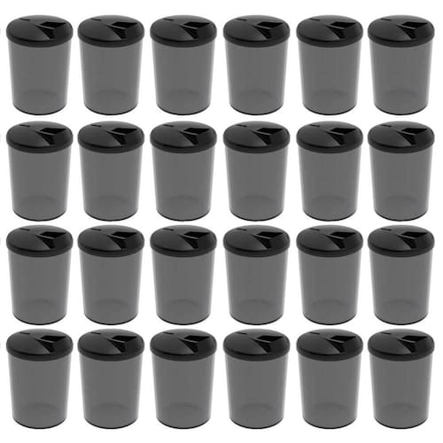 Garantia: 90 dias / Peso de cada: 170g / Cor predominante: fumê / Referência: 7794462353042; Dimensões de cada: 8,5cm (D) x 12cm (A); Conteúdo: 24 farinheiras com tampa; Capacidade de cada: 400ml; Materiais: polipropileno e poliestireno.