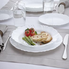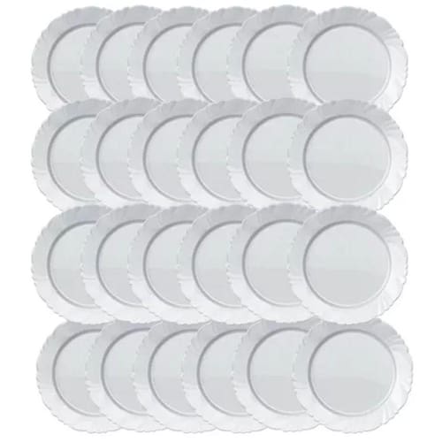 Jogo com 24 Pratos Rasos Pétala Duralex Opaline em Vidro Branco Nadir Figueiredo