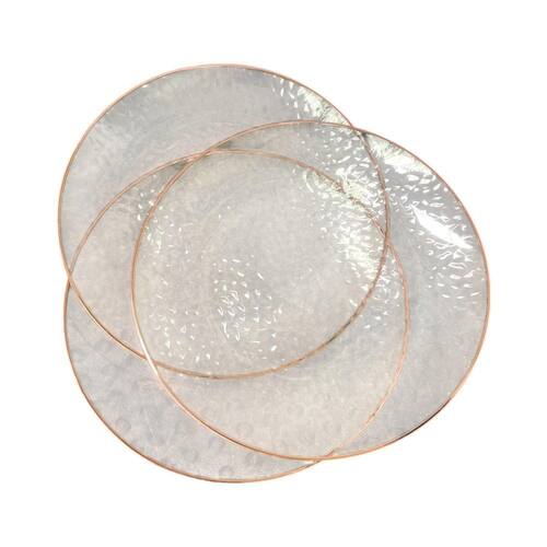 Kit 24 Pratos Borda Rosê Acrílico Redondo Transparente 25Cm