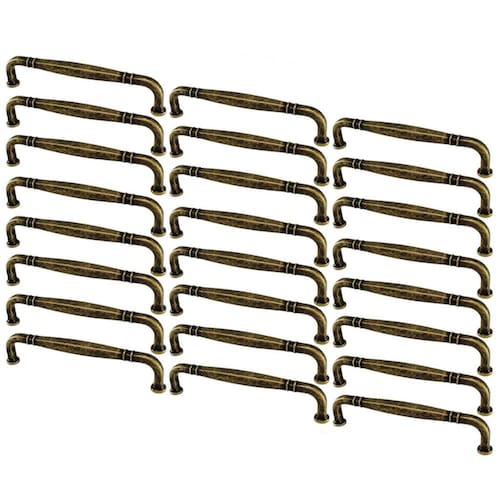 Garantia: 3 anos / Peso total: 1,488kg / Cor predominante: ouro velho tamboreado / Referência: 7798140675242; Dimensões de cada puxador: 1,2cm (C) x 14cm (L) x 3cm (A); Conteúdo: 24 puxadores.
