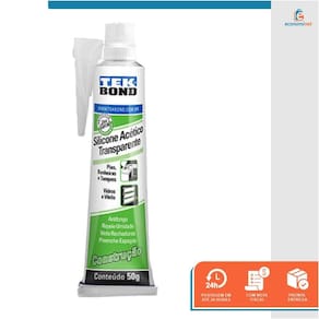 SILICONE ACÉTICO TRANSPARENTE 50GPrincipais características:O Silicone Acético de Construção é um adesivo selante tixotrópico monocomponente, baixo módulo, antifungo e de cura acética;Sua cura ocorre em temperatura ambiente e na exposição à umidade do ar;É considerado um silicone de uso geral, muito utilizado na construção civil na vedação e selagem de pias e vasos sanitários, box em banheiros, portas e janelas;Possui excelente resistência aos raios UV e pode ser aplicado em áreas externas.Especificações técnicas:Cor: TransparentePeso líquido: 50gComposição química: Adesivo a base de polímero de siliconePeso aproximado: 56gEmbalagem: 24 unidadesRef.: 3683400Marca: Tekbond