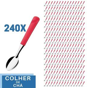 Conjunto de Colheres de Chá As colheres de chá da linha Luna são um conjunto elegante e funcional para qualquer momento em que um toque especial é necessário. Com um cabo vermelho vibrante feito de plástico de alta qualidade, essas colheres são confortáveis de segurar e fáceis de identificar em meio a outros utensílios de mesa. O aço inox das colheres garante que elas permaneçam brilhantes por um longo tempo, enquanto o design elegante torna as colheres uma adição atraente à sua coleção de utensílios de cozinha.