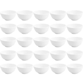 Conteúdo: 25 tigelas de porcelana.