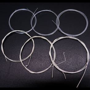 Jogo com 6 cordas clássicas de nylon sendo 3 com revestimento em liga de cobre banhado a prata e 3 em nylon transparente, ideal para iniciantes.Especificações - Marca: Thomaz- Modelo: A103-H- Aplicação: ViolãoE-1ª – 0.0285 inch | 0.72 mmB-2ª – 0.0325 inch | 0.83 mmG-4ª – 0.041 inch | 1.04 mmD-4ª – 0.030 inch | 0.76 mmA-5ª – 0.036 inch | 0.91 mmE-6ª – 0.044 inch | 1.12 mmConteúdo da Embalagem - 25 Jogos de Encordoamento Violão Nylon 103H Thomaz- Dimensões da Embalagem (AxLxP): 9 x 14 x 20 cm*Imagens meramente ilustrativas