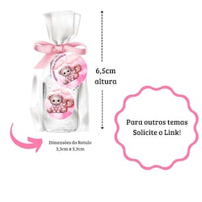 Kit Mini Álcool Gel Perfumado - Delicadeza, Proteção e Muito Charme Apresentamos o kit ideal para quem quer oferecer cuidado e carinho de forma prática e cheia de ternura Nosso mini frasco de álcool gel contém 30ml e mede apenas 7cm, perfeito para levar na bolsa, no carrinho ou ter sempre à mão. Cada frasco é suavemente perfumado com a fragrância de algodão, um cheirinho aconchegante e delicado, que lembra o frescor e a pureza do seu bebê. O diferencial mais encantador Todos os frascos possuem uma linda estampa de ursinha, acompanhada de uma letra do alfabeto. Perfeito para enfeitar, presentear ou simplesmente espalhar cuidado com um toque lúdico e alegre. O kit contém 25 unidades, enviado desmontado, para que você possa montar com carinho para sua ocasião especial: maternidade, chá de bebê, batizados ou festinhas. O que acompanha o kit: frascos Cristal de 30ml, com tapas transparentes com alcool gel com cheirinho de bebê 25 frascos preenchidos com álcool gel com fragrância de algodão 25 saquinhos de celofane 25 fitas na delicada cor rosa ou variada de acordo com a disponibilidade em sempre presamos a melhor combinação 25 tags redondas para dar um toque final 25 adesivos redondos, cada um com a estampa fofa da ursinha + letra do alfabeto Proteção e carinho em cada detalhe, com o cheirinho mais doce do mundo e a fofura das nossas ursinhas Garanta já o seu kit e torne cada momento ainda mais especial Marca: Não Informado Ean: 7897722088972