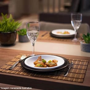 Dimensões de cada prato: 26cm (D) x 2cm (A);