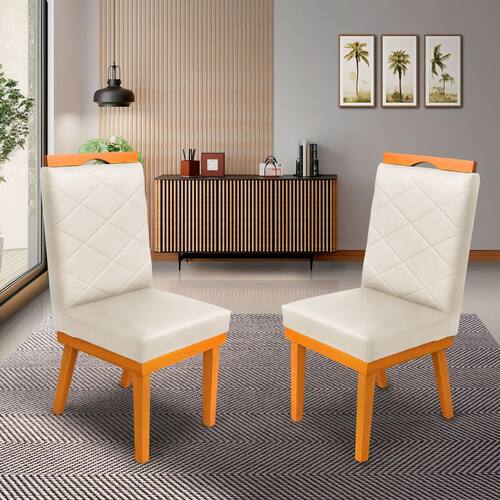 KIT 2Cadeira Ana Matelassê tecido suede com Base Fixa de Madeira Maciça e Puxador Castanho - Bege