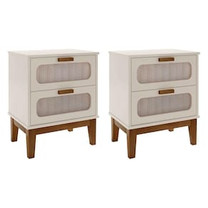AS IMAGENS SÃO MERAMENTE ILUSTRATIVAS E PODEM SOFRER VARIAÇÕES DE COR E PEQUENOS DETALHES DE ACORDO COM O SEU MONITOR, ILUMINAÇÃO DO AMBIENTE E ATÉ MESMO A SUA PERCEPÇÃO 2Mesas de Cabeceira 2Gavetas Santorini Off White 45 Cm Palhinha Indiana