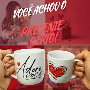 Kit 2un caneca branca porcelana 300ml café meu coração é seu presente dia dos namorados casal