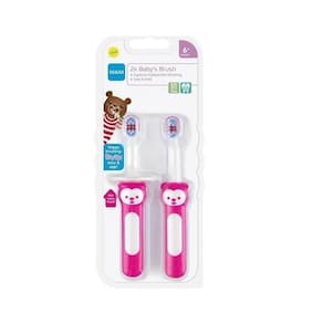 Kit 2uni. Escova Dental Baby's Brush 6+m MAM Os bebês precisam aprender a escovar os dentes corretamente. A Escova Baby's Brush torna fácil a escovação desde o início. E com a ajuda da mamãe e do papai, fica ainda mais fácil. Embalagem dupla: contém 2 duas unidades Os bebês podem imitar os adultos fazendo movimentos de escovação sozinhos Cabo ergonômico, fácil de segurar Característica CABEÇA: Pequena e arredondada com cerdas extramacias. Cerdas vermelhas indicam a quantidade recomendada de creme dental. TRAVA DE SEGURANÇA: Mantém a escova a uma distância segura do fundo da boca. CABO: Ergonômica e antideslizante. Formato compacto - fácil para os bebês segurarem com suas pequenas mãos. Medida da Embalagem: Peso: 100 g Altura: 8 cm Largura: 19 cm Comprimento: 17 cm Ean: 9001616705205
