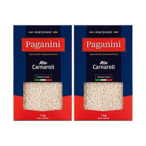 Kit 2X: Arroz Italiano Carnaroli Paganini 1kg O Arroz Italiano Carnaroli Paganini é um grão menor que os demais tipos de arroz italiano e arredondado, bom para risotos delicados, com ingredientes miúdos ou frutos do mar.