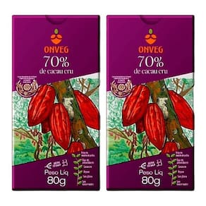 Kit 2x: chocolate 70% cacau cru com açúcar demerara onveg 80g O chocolate 70% cacau cru com açúcar demerara onveg é feito com apenas dois ingredientes e não passa pelo processo de torra das amêndoas, preservando uma das suas maiores riquezas nutricionais, os antioxidantes.