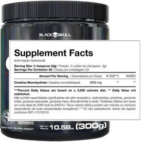 Creatina Monohidratada 100% Pura 300G Black Skull