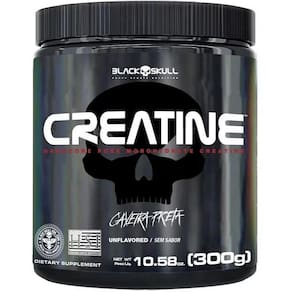 Creatina Monohidratada 100% Pura 300G Black Skull Creatina monohidratada entregando 3000mg por dose. O que é creatina A creatina é um composto produzido pelos rins, fígado e pâncreas e é armazenada, em sua maior parte, nas fibras musculares. Ela também pode ser encontrada em aliment0s como carnes e peixes. A cada 1kg de carne vermelha, encontra-se 5g de creatina. O papel primário da creatina intramuscular é fornecer energia para as células musculares durante exercícios de resistência e sprint de alta intensidade a creatina monohidratada é um dos ativos mais estudados pela ciência nos últimos anos. Modo de consumo: adicionar 1/2 c0lher de chá aprox. 3g de creatine em 150ml de água e consumir uma vez ao dia conforme recomendação de um da saúde. Ingredientes: creatina monohidratada. Não contém glúten. Marca: Não Informado