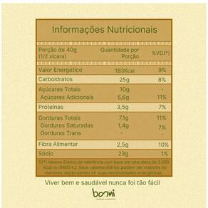 Ingredientes: flocos de milho não transgênico, mix de nuts castanha de caju, amêndoa, castanha do pará e nozes , flocos de arroz, sementes de girassol, melado de cana, linhaça dourada, gergelim, coco integral em lascas, passas de uva branca, açúcar mascavo, canela em pó e óleo de girassol. Não contém glúten.