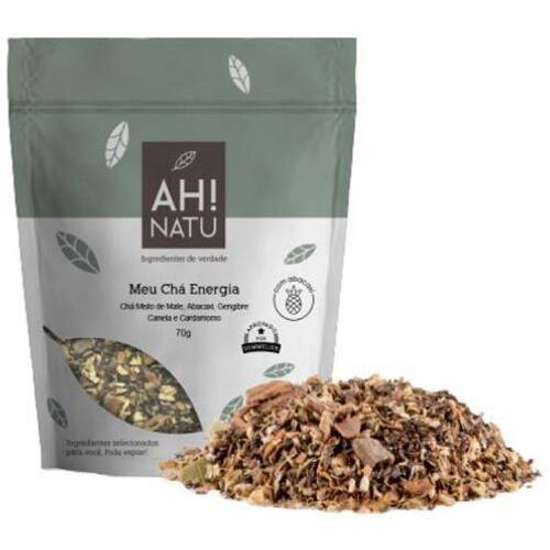 Kit 2x: meu chá energia termogênico ah natu 70g Chá misto meu chá energia energizante e termogênico ah natu é um blend especial que reúne mate tostado, abacaxi, gengibre, canela, cravo e cardamomo, possui sabor marcante das especiarias, com ação termogênica, além de auxiliar na digestão. Com sabor marcante das especiarias - mate tostado, abacaxi, gengibre, canela, cravo e cardamomo, o chá misto meu chá energia energizante e termogênico ah natu possui ação termogênica, além de auxiliar na digestão. Ideal para dar aquela força extra na disposição e deixar a preguiça de lado, experimente incluir, no seu pré-treino. Ingredientes: mate torrado, abacaxi, gengibre, canela, cravo, cardamomo. Não contém glúten. Marca: Ah! Natu