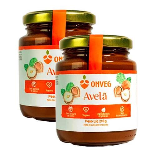 Kit 2x: pasta de avelã com chocolate onveg 210g A pasta de avelã com chocolate onveg é feita da união de avelãs selecionadas com um bom chocolate, açúcar mascavo e zero óleo de palma.
