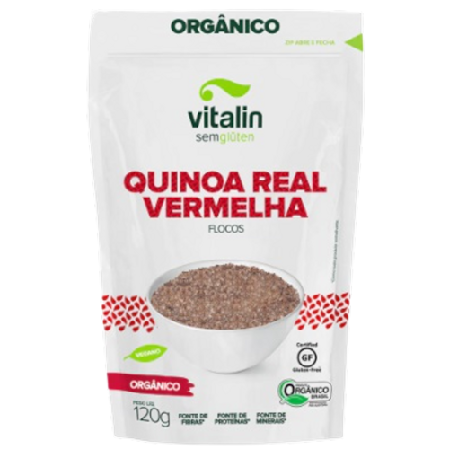 A Quinoa Real Vermelha em Flocos Orgânica Sem Glúten Vitalin, além de ser ótima fonte de carboidratos de baixo índice glicêmico, vitaminas, minerais e gordura saudável, a quinoa contém todos os aminoácidos essenciais que o organismo não produz.