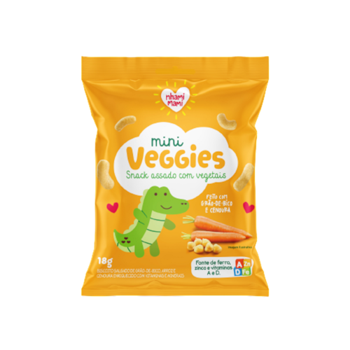 Feito com ingredientes 100% naturais, integrais e sem gordura trans ou aditivos artificiais, o Snack Infantil Mini Veggies Grão de Bico e Cenoura Nhami Mami é perfeito para um lanchinho saudável e equilibrado.