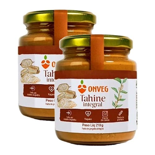 Fonte de cálcio e fibras, o tahine integral creme de gergelim onveg é um alimento muito comum no oriente, servindo de ingrediente para homus de grão bico e o babaganoush de berinjela.
