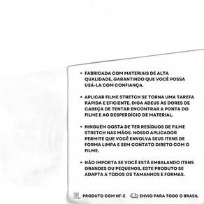 Ideal para empresas e residências: Seja para embalar produtos em sua empresa ou organizar sua mudança residencial, nosso aplicador para filme stretch é a solução conveniente que atende a todas as suas necessidades de embalagem.