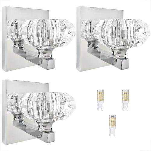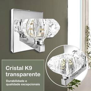 Descrição: - materiais: metal e cristal k9. - dimensões do cristal cxlxa : 7 cm x 7 cm x 4 cm - dimensões da base: Altura: 12 cm Largura: 10 cm Profundidade: 2 cm - profundidade total da arandela: 10 cm