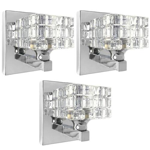 - Materiais: metal e cristal k9. - Dimensões do cristal CxLxA : 7 cm x 7 cm x 4,5 cm - Dimensões da base: Altura: 12 cm Largura: 10 cm Profundidade: 2cm - Profundidade total da arandela: 10,5 cm