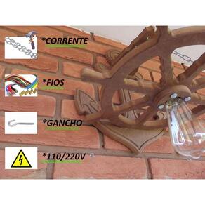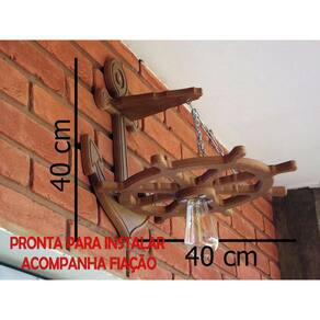 Kit 3 arandela luminária lustre leme de navio 110/220v :-:-:-:-:-:-:-:-:-:-:-:-:-:luminária leme ou timão de navio rustico:-:-:-:-:-:-:-:-:-:-:-:-:-: Crie inove e encante A nossa linha de moveis não para de crescer e agora traz para você, esta linda peça para organizar diversos ambientes da casa.Afinal existem coisas que nunca saem de moda, que tal esse lindo lustre para deixar seu ambiente ainda mais charmoso Um charme né.Esta peça com certeza vai deixar a sua casa mais bonitaLindo para decorar em cima de uma mesa de jantar, hall de entrada área de churrasco, ambientes como áreas de garagem, garagens com bar, chácara, decorar festas, lanchonetes, casa de campo, pousadas entre outras. Deixando seu ambiente ainda mais agradável. Garantimos a qualidade de nossos produtos Nossos produtos são de fabricação própria cortadas com cnc router que nos traz medidas e ângulos perfeitos nosso acabamento é feito a mão, são envernizados com verniz de alta resistência e durabilidade dando assim um ótimo acabamento. :::especificações técnica::: ::: acompanha fiação ::: : características da luminária: - dimensões: - diâmetro 40 cm - altura 40 cm - peso do produto 2 kg - espessura 3 cm - bocais 1 - kit sim - material: mdf medium density fiberboard - mdf ecologicamente correto com certificado fsc de alta qualidade - cor: mogno, tabalo - nível de instalação: fácil - garantia de 90 dias contra defeitos de fabricação :::conteúdo da embalagem::: - ganchos sim- soquetes sim- base para teto sim - corrente sim- fios sim- lâmpadas não :::sobre a compra::: O prazo começa a contar após a aprovação da compra. Será enviado código de rastreio logo após a postagem do produto. :::antes de comprar::: Tire todas as suas dúvidas no campo perguntas e respostas do vendedor. Os objetos decorativos não acompanham o produto Fique à vontade para nos fazer perguntas. Perguntas frequentes Os produtos são novosSim todos os nossos produtos são novos. Os produtos têm garantiaSim, todos os nossos produtos têm garantia de fábrica. 3 meses Qual a voltagemA voltagem depende da lâmpada 100/220 v Acompanha as lâmpadasAs lâmpadas não acompanha o produto Marca: Eco.Start