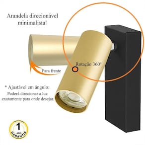 Kit 3 Arandela Spot Leitura Direcionável Dourada Quarto Lup85 A arandela estilo spot minimalista pode ser uma peça chave e prática para seu cômodo, como na cabeceira da cama, sala, escritório e entre outros ambientes. Além disso, a arandela é ajustável em ângulo, ou seja, você pode direcionar a luz exatamente para onde desejar. Ideal para um espaço de leitura ou lazer, tendo uma luz mais direcionada para onde deseja.