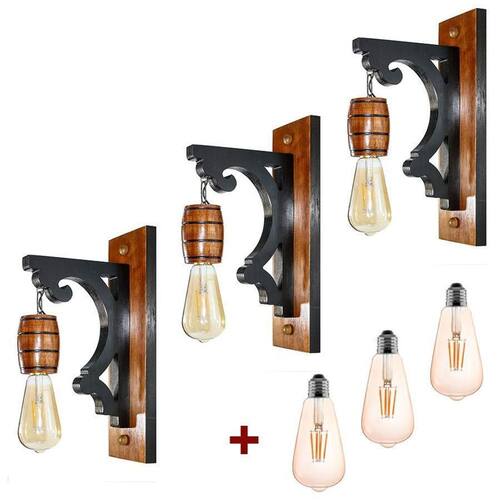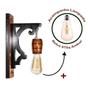 Kit 3 Arandelas / Luminárias de Parede em Madeira Maciça ACOMPANHA 3 LÂMPADAS ST64 RETRÔ Cor Mogno