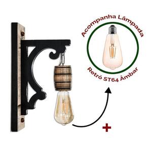 Kit 3 Arandelas / Luminárias de Parede em Madeira Maciça ACOMPANHA 3 LÂMPADAS ST64 RETRÔ Cor Rústica