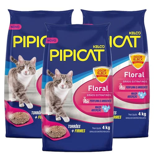 AREIA HIGIÊNICA PIPICAT FLORAL PERFUMADA Areia Sanitária Pipicat Perfumado Floral é específico para gatos. É altamente absorvente de urina, absorvente de maus odores e tem ótima capacidade de formação de torrão para facilitar a remoção da área contaminada, e ainda libera um cheirinho agradável. Os granulados sanitários são naturais e por isso não são prejudiciais ao pelo do seu gatinho. Pipicat perfumado contém uma exclusiva fragrância que elimina os maus odores, com grânulos extrafinos que facilita a limpeza no recipiente. Benefícios: - Extra Fino; - Ultra absorvente; - Perfume Floral. Como funciona: Coloque uma camada de 5cm de altura da areia, no recipiente do seu gatinho. A urina em contato com a areia concentra-se numa pequena área, transformando-se em um pequeno torrão. Remova o torrão formado pela urina ou fezes, reaproveitando o restante do produto e complete a quantidade retirada.