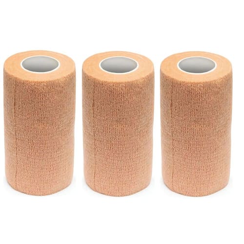 Kit 3 unidades Bandagem Elástica Flexivel Autoaderente 10cmx4,5m Bege