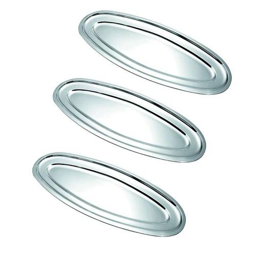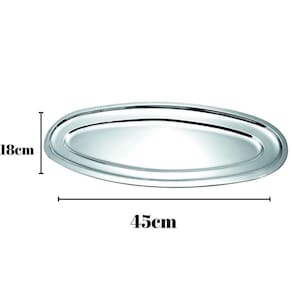Kit 3 Bandeja Travessa Oval Inox Grande 45cm Peixe Porção Travessas inox 45cm. Travessa ideal para servir alimentos e saladas com elegância. O item de 45 cm é produzido com acabamento em Aço Inox de alta qualidade, que oferece maior durabilidade e resistência. Características: - A Travessa Oval para Peixe Rasa 45 cm é fabricada em aço inox, material altamente resistente, durável, inquebrável e com excelente padrão de qualidade. - Ideal para compor a mesa e servir suas refeições, não contamina alimentos e tem uma durabilidade maior. - Possui diâmetro de 45 cm e formato oval. - Dimensão: 45 cm x 18cm. - Material: aço inox.