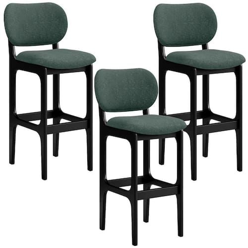 Amplamente sofisticado, o Kit 3 Banquetas Alta Bar Cozinha Sala Jantar Fixa Betta L02 Preto Linho Verde Musgo - Lyam Decor irá agregar ainda mais valor em sua decoração!! Sendo capaz de compor muito bem o ambiente, é produzido com materiais de excelente qualidade, a resistente estrutura em madeira de Taeda, na cor preto, conta com apoio para os pés (que garante maior ), além do assento e encosto estofados super confortáveis e convidativos, que são revestidos em tecido Linho, extremamente elegante.