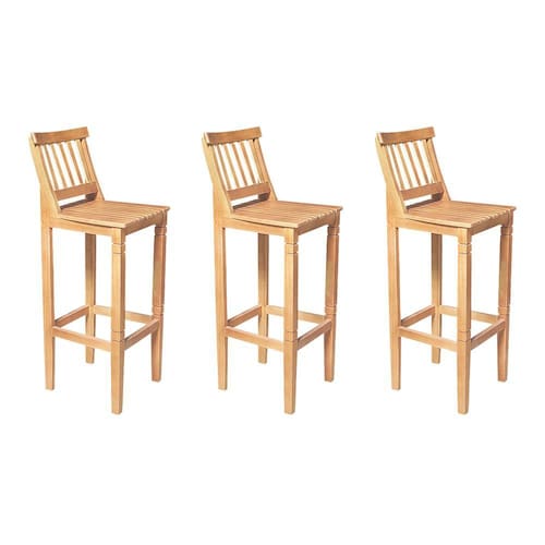 Kit 3 Banquetas Alta de Madeira Maciça Ripada com Encosto Confort - Natural - Bege