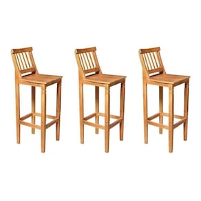 Kit 3 Banquetas Alta De Madeira Maciça Ripada Com Encosto Confort - Castanho - Cor: Marrom