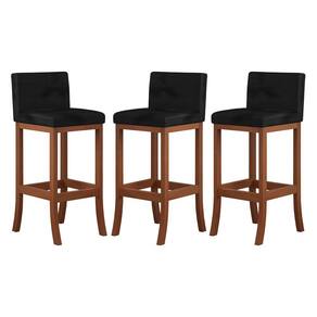 Kit 3 Banquetas Alta Estofada Gourmet para Cozinha 38x100 Cm Espanha Madeira Castanho Suede CCS - Preto