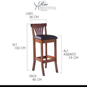 A Banqueta Alta Valentina promete ser o centro das atenções em todos os ambientes. Perfeita para bancada de cozinha américa, balcão alto, mesa bar, espaço gourmet, cantinho do churrasco e muito mais. Possui uma estrutura reforçada em madeira de taeda aumentando a sua durabilidade, além de ter o seu assento estofado com tecido facto impermeável, garantindo o conforto e qualidade das banquetas. O seu ambiente vai ficar muito mais elegante e cheio de charme com os móveis da Rio Madeira Interiores. Característica do Produto: - Produzida em Madeira Maciça Taeda - Assento Estofado Preenchido com Espuma D23 - Acabamento em Verniz cor Imbuia - Tecido de Alta Qualidade Impermeável Facto Marrom L74 - Produto Entregue Montado * Kit Composto por 3 Banquetas Dados Técnicos do Produto: - Altura Total: 100 cm - Altura do Encosto: 26 cm - Altura para sentar: 74 cm - Largura Total: 36 cm - Largura do Assento: 40/35 cm - Profundidade Total: 46 cm - Profundidade do Assento: 38 cm - Peso: 8 kg Embalagem do Produto: Altura Total: 100,5 cm Largura: 50 cm Profundidade: 40 cm Peso: 12 kg Cubagem: 0,210 m³ Informações Adicionais: Garantia para defeitos de fabricação conforme Código de Defesa do Consumidor. *ATENÇÃO: Entregas são feitas em horário comercial. Não nos responsabilizamos pela montagem, subir ou içar o móvel. **As imagens ambientadas são meramente ilustrativas e podem apresentar itens que não compõe o produto, as cores do produto podem variar de acordo com o monitor, a iluminação do ambiente ou sua percepção visual. ***Limpeza: Deve ser feita com pano macio e seco ou levemente umedecido com água e sabão neutro. Não devem ser utilizados abrasivos.