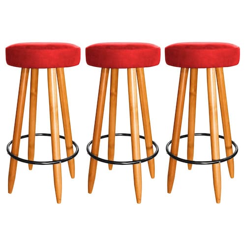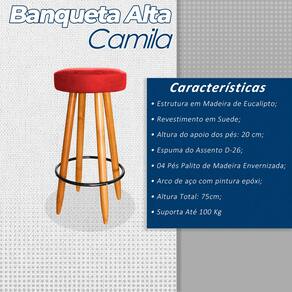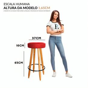 Características do Produto: - Base do assento e fundo Mdf e Mdp de 15MM; - Altura para apoio dos pés: 20 cm; - Altura do Assento: 10 cm; - Parte inferior acabamento em TNT preto; - Estrutura em madeira de eucalipto; - Arco em aço, com pintura especial epóxi; - Suporta uma pessoa até 100 kg; - Garantia 3 meses por nós fabricantes; - Formato Redondo; - Espuma do Assento D-23; - 4 Pés Palito Retrô; - 4 Chapas de Aço Galvanizado para fixação dos pés; Dimensões do produto montado: - Altura: 75 cm; - Largura: 37 cm; - Comprimento: 37 cm; Observações importantes: Para assegurar que sua banqueta mantenha sua durabilidade e beleza ao longo do tempo, siga estas recomendações: 1 - Limpeza: Use pano úmido com sabão neutro, evitando abrasivos. 2 - Proteção Solar: Evite sol direto para prevenir desgaste. 3 - Umidade: Seque imediatamente em caso de derrames. 4 - Uso Adequado: Respeite a capacidade de peso indicada e não faça movimentos perigosos em cima da banqueta. 5 - Manutenção: Inspecione periodicamente e limpe conforme instruções acima. 6 - Armazenamento: Local limpo e seco, protegido de poeira e umidade, não expor ao sol e chuva.