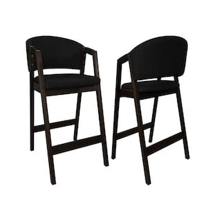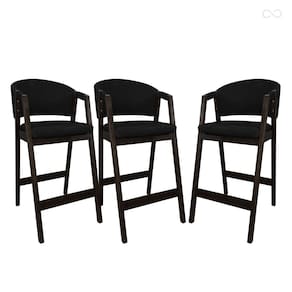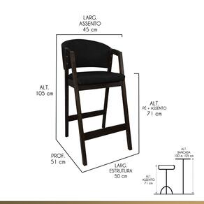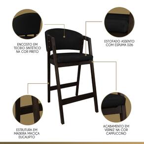 CARACTERÍSTICAS TÉCNICAS: - Produzido em Madeira Maciça; - Acabamento Verniz na Cor Capuccino; - Assento com Espuma D26; - Encosto com Espuma D23; - Revestido em Tecido Material Sintético na Cor Preto.