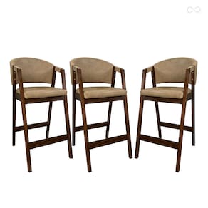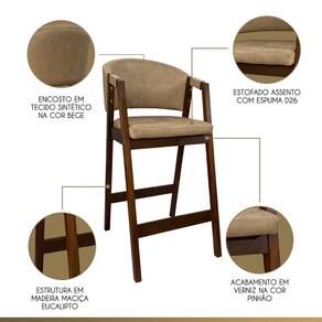 CARACTERÍSTICAS TÉCNICAS: - Produzido em Madeira Maciça; - Acabamento Verniz na Cor Pinhão; - Assento com Espuma D26; - Encosto com Espuma D23; - Revestido em Tecido Material Sintético na Cor Bege.