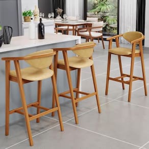 A melhor escolha para os momentos de confraternização no aconchego da sua casa, acaba de chegar! O Kit 3 Banquetas Alta Cecília vem com a personalidade e elegância que sua decoração merece! É ideal desde refeições rápidas, até um Happy Hour com os amigos, família. Seu design único valoriza o ambiente, sem deixar pra trás a beleza e qualidade! Para deixar a sua área gourmet mais aconchegante, ela possui assento e encosto estofados, confeccionados com materiais de excelente qualidade, e extremamente resistentes.