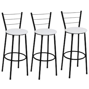 Banqueta Alta Itália Preta com Assento Branco Jaddi Seja para acompanhar um café rápido no início do dia ou aquela confraternização especial com os amigos, a Banqueta Alta com Encosto será uma grande aliada na composição do seu espaço. Modelo alta, ela é ideal para acompanhar bancadas e balcões, seja na sala de jantar, espaço de churrasqueira ou até mesmo em seu estabelecimento comercial. Com design simples que conta com cor sóbria, a peça embeleza o seu espaço ao mesmo tempo que garante a comodidade ideal, afinal, o assento preenchido em espuma recebe superbem o corpo além do suporte para os pés. Produto que faz toda diferença no seu ambiente. Características da Banqueta Alta com Encosto Cor da Estrutura: PretaCor do Assento: BrancoCapacidade (kg): 120 kgMaterial da Estrutura: Tubos de Aço carbono (7/8 de polegada)Material do Assento: MDF e EspumaEncosto: Arame Dimensões da Banqueta Alta com Encosto Altura do assento até o chão (cm): 72 CmAltura do encosto até o chão (cm): 95 CmDiâmetro do assento: 32 Cm Conteúdo da Embalagem: 03 Banqueta Alta com Encosto Dicas Não deixe suas banquetas expostas ao sol por mais de 4 horas.Não use produtos abrasivos na limpeza de suas Banquetas.Usar um pano umedecido na limpeza da Banqueta e, logo em seguida, seque-as com um pano seco. A tonalidade da cor pode variar de acordo com o lote do fabricante e/ou as configurações de seu monitor. *Imagens meramente ilustrativas Garantia 3 Meses contra defeito de fabricação