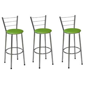 Banqueta Alta Itália Cromada com Assento Verde Jaddi Seja para acompanhar um café rápido no início do dia ou aquela confraternização especial com os amigos, a Banqueta Alta com Encosto será uma grande aliada na composição do seu espaço. Modelo alta, ela é ideal para acompanhar bancadas e balcões, seja na sala de jantar, espaço de churrasqueira ou até mesmo em seu estabelecimento comercial. Com design simples que conta com cor sóbria, a peça embeleza o seu espaço ao mesmo tempo que garante a comodidade ideal, afinal, o assento preenchido em espuma recebe superbem o corpo além do suporte para os pés. Produto que faz toda diferença no seu ambiente. Características da Banqueta Alta com Encosto Cor da Estrutura: CromadaCor do Assento: VerdeCapacidade (kg): 120 kgMaterial da Estrutura: Tubos de Aço carbono (7/8 de polegada)Material do Assento: MDF e EspumaEncosto: Arame Dimensões da Banqueta Alta com Encosto Altura do assento até o chão (cm): 72 CmAltura do encosto até o chão (cm): 95 CmDiâmetro do assento: 32 Cm Conteúdo da Embalagem: 03 Banquetas Alta com Encosto Dicas Não deixe suas banquetas expostas ao sol por mais de 4 horas.Não use produtos abrasivos na limpeza de suas Banquetas.Usar um pano umedecido na limpeza da Banqueta e, logo em seguida, seque-as com um pano seco. A tonalidade da cor pode variar de acordo com o lote do fabricante e/ou as configurações de seu monitor. *Imagens meramente ilustrativas Garantia 3 Meses contra defeito de fabricação